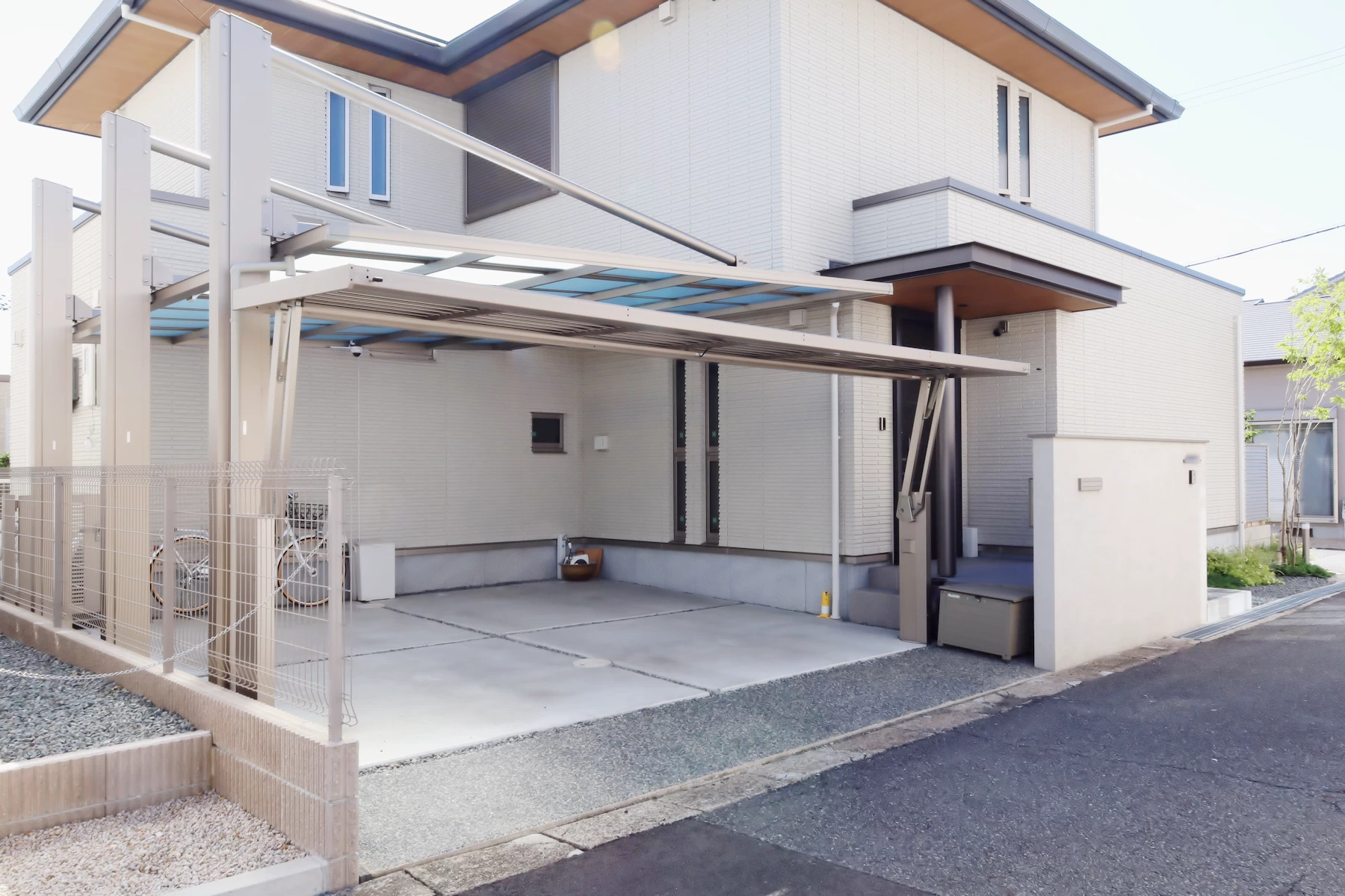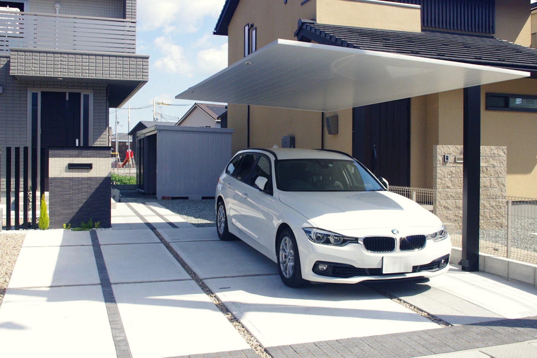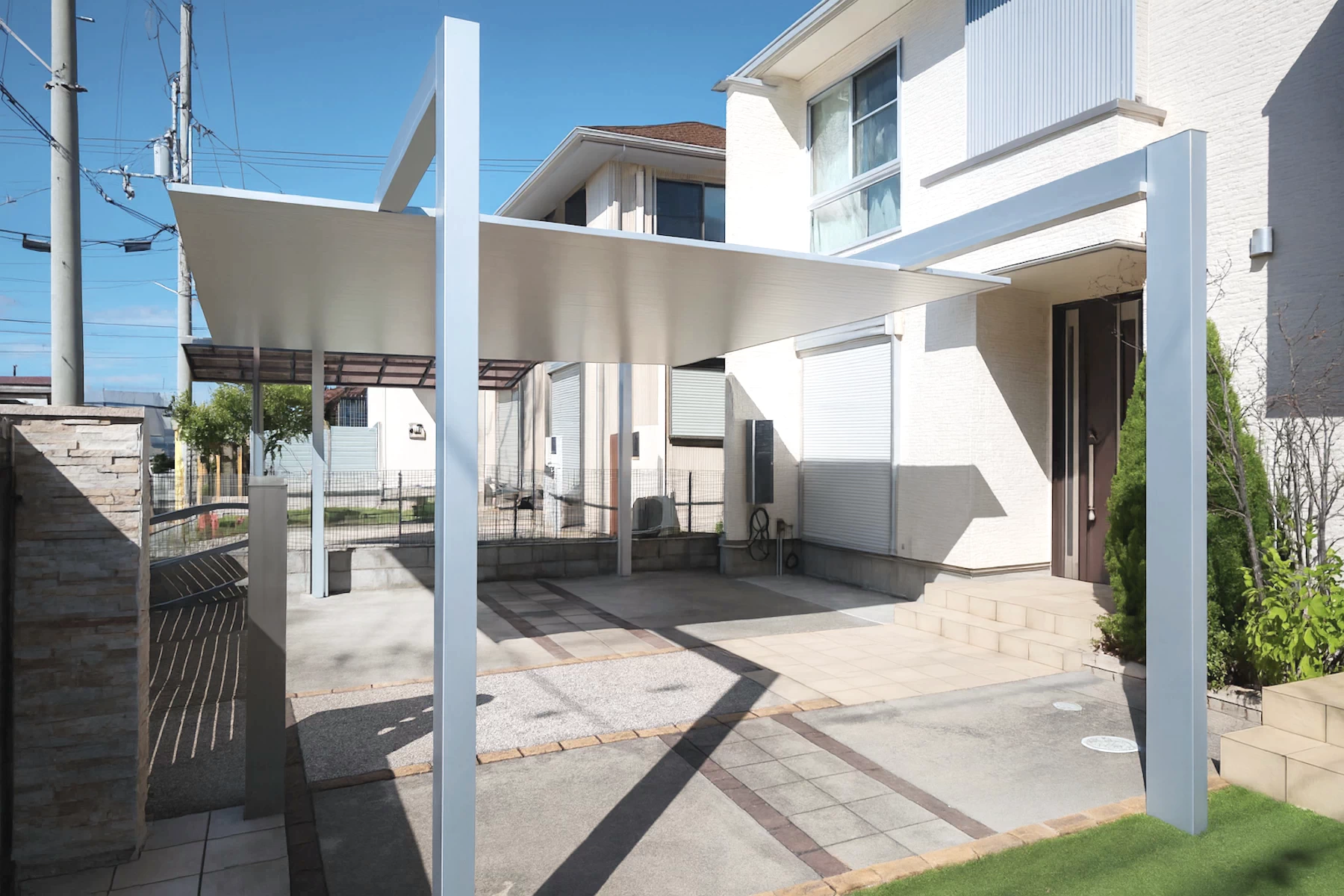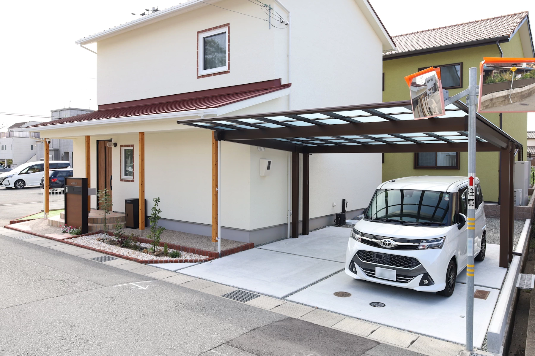 梁延長タイプで柱を敷地端まで寄せ、人も車も自由な動線で使いやすくカーポートを追加