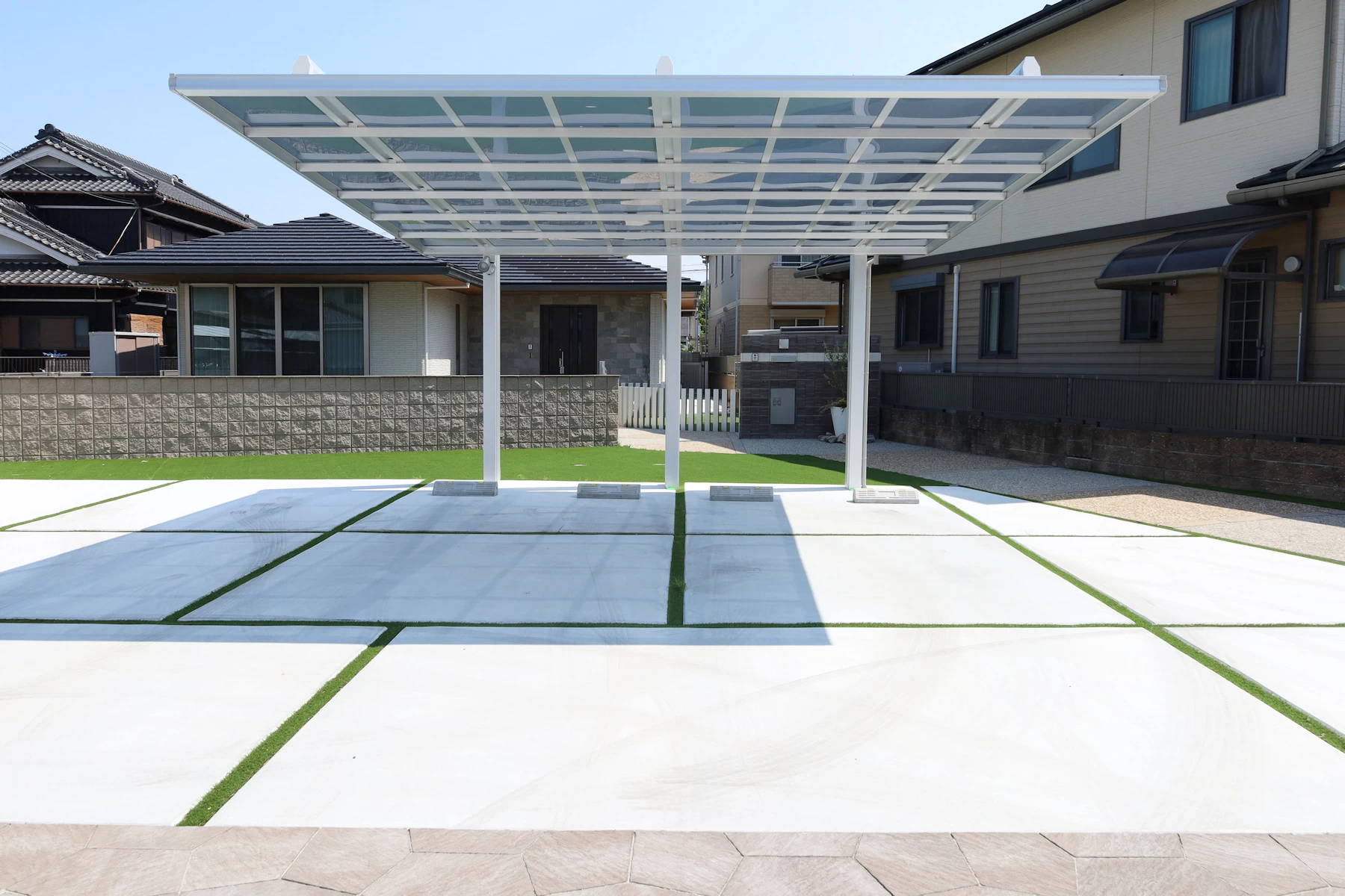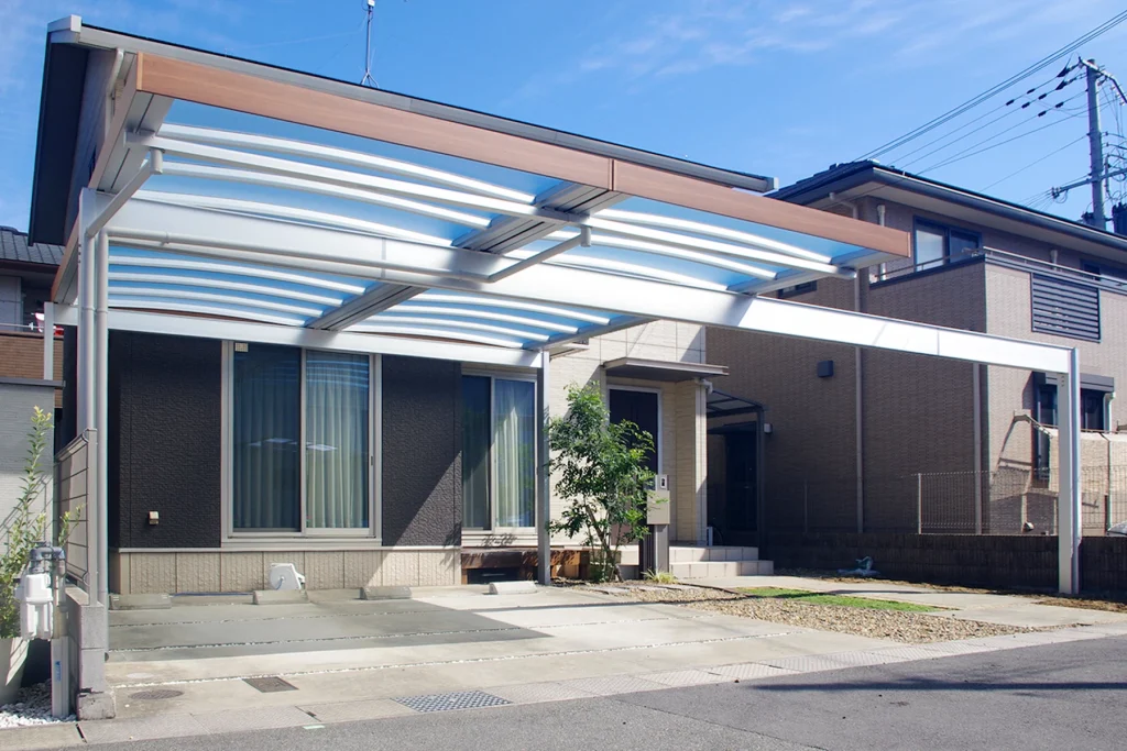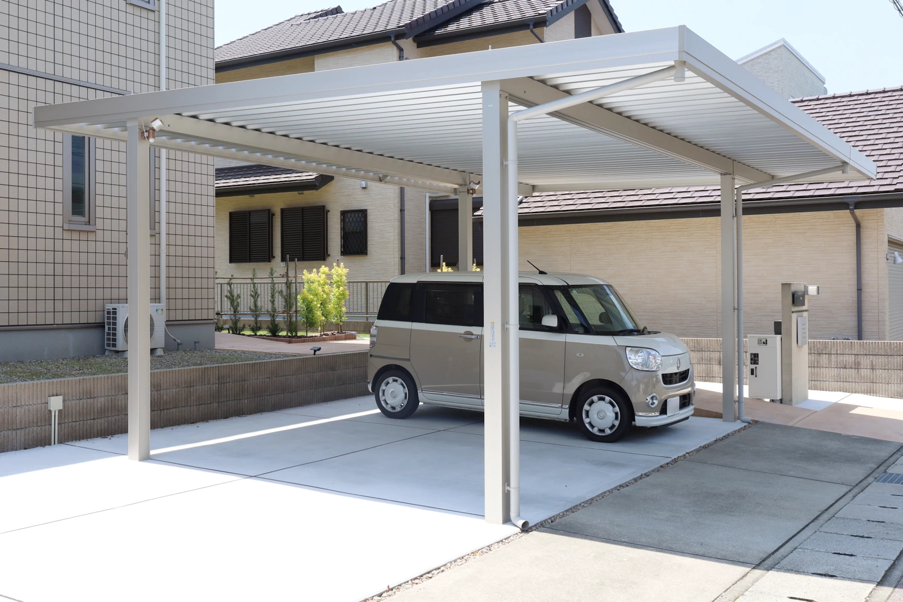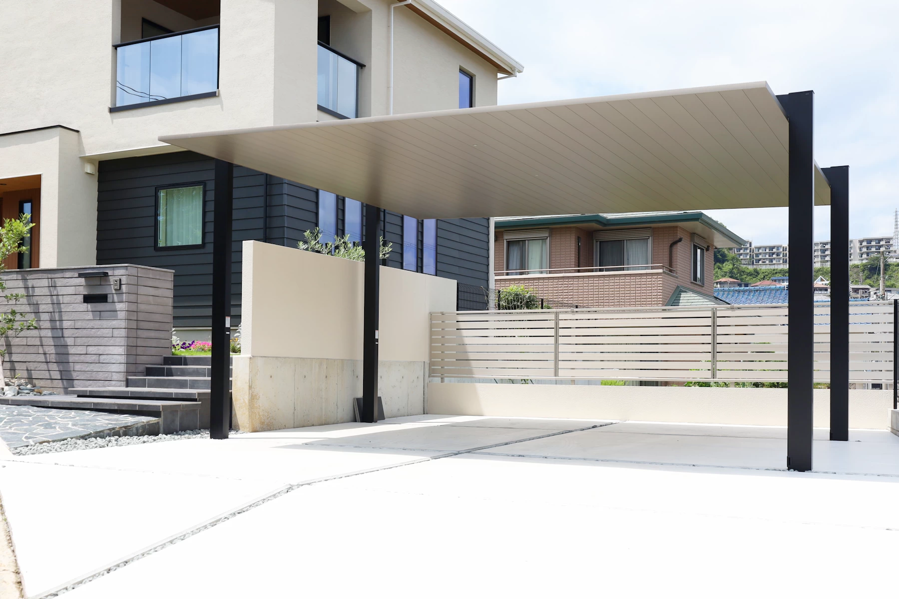 シンプル外構を作られたお客さまが、次の計画として検討されることが多いカーポート。最近のトレンドはシンプルなデザインで、色や仕様などお好みに合わせた選択ができます。外構をワンランクアップさせる人気の高いカーポートをご紹介します。