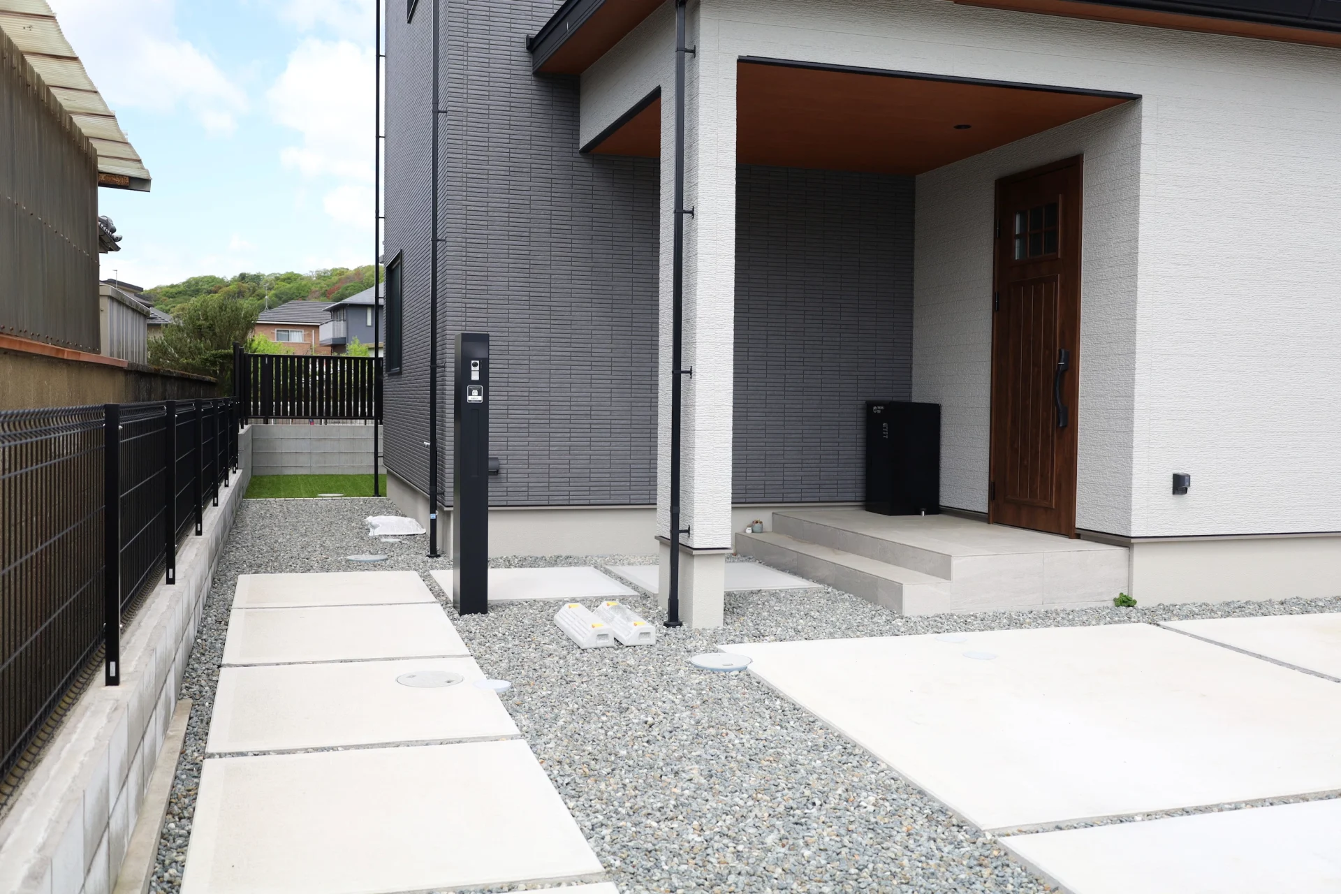 人工芝の庭と建物周りの雑草対策